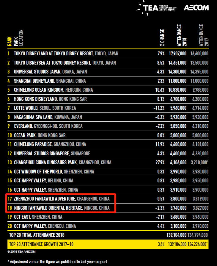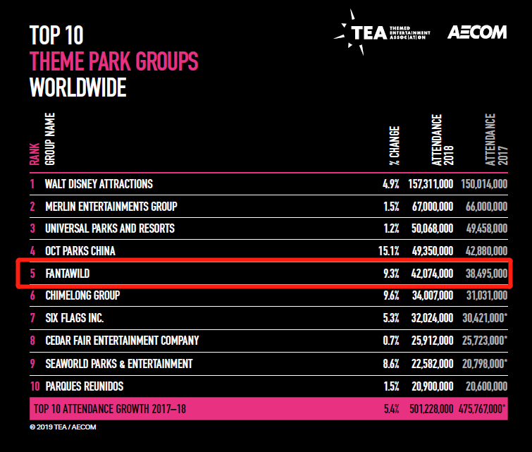 全球主題樂園集團排名:方特連續三年位居全球第五