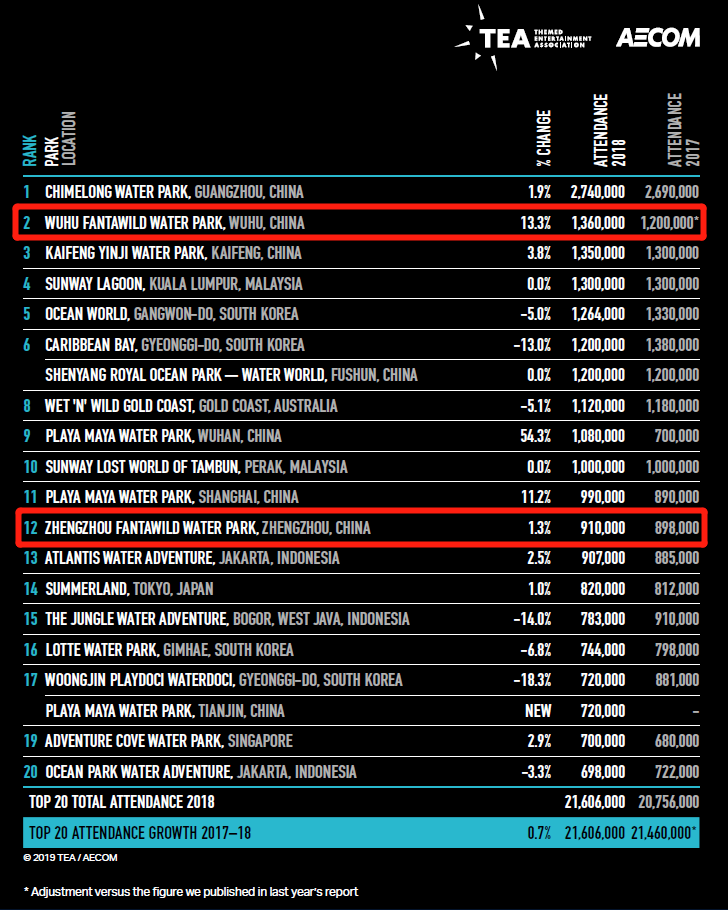 亞太地區水上樂園排名:蕪湖、鄭州水上樂園分列第2、12名
